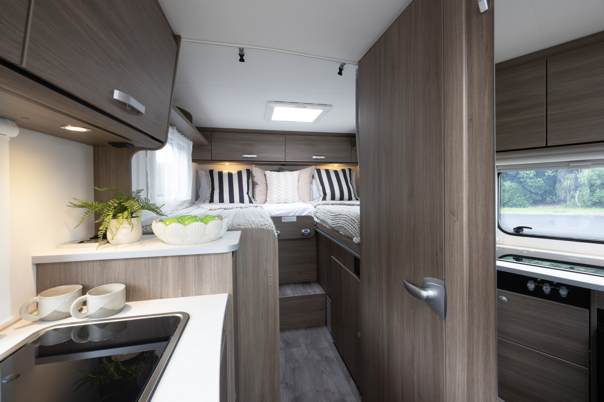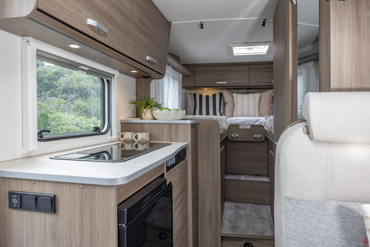 The spacious interior of the Carado V337 belies its length of just 6.7m. The twin single beds convert to a king giving you options. The clever bathroom maximises the space and the impressive kitchen makes cooking a dream. The V337 offers comfort and practicality at a competitive price.