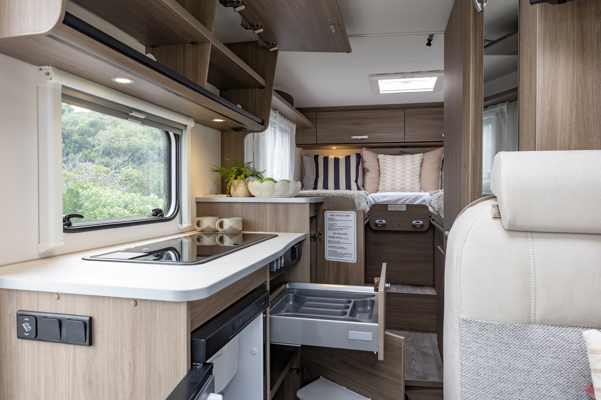 | Fridge/freezer | 89L Fridge/11L freezer (runs on 230V, 12V and gas) |